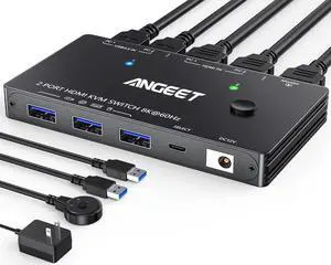 HDMI KVM Switch for 2 Computers 1 HDMI Monitor USB 3.0 8K@60Hz 4K144Hz with Remote