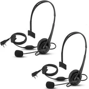 SAMCOM HSK01 Single Headset with PTT & Boom Mic - 2.5mm with 3mm 2 Pin K Plug for FPCN10A FPCN30A FPCN20A Two-Way Radios, Walkie Talkies Overhead Earpiece for Security Wired, 2 Pack
