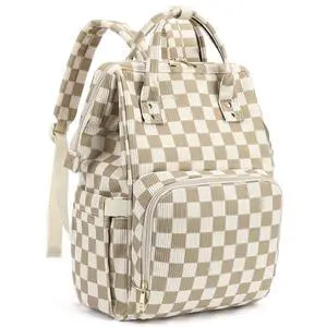 Dezcrab Laptop Backpack for Women, Corduroy College School Backpack Bookbag 15.6 inch Business Computer Travel Backpack (Checkered Brown)