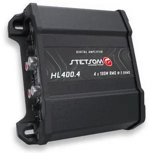 Stetsom HL 400x4 2 Ohms - Compact Digital 4 Channel Amplifier, 400W RMS 400x4, Full Range, High Input, Bass Boost Gain + 14db (Variable Adjustment 30-75hz), Multichannel, Digital Sound, Crossover