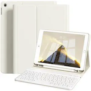 BQDIYOO Keyboard Case for iPad 9th/8th/7th Generation(2021/2020/2019) Detachable Wireless Bluetooth Round Cap Keyboard Case for 10.2 inch iPad Case with Pencil Holder Auto Wake/Sleep, Cream White