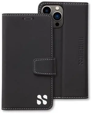 SafeSleeve Wallet Leather Case for iPhone 14 Pro Max EMF Blocker for Cell Phone with 3 Card Holder & Adjustable Stand Magnetic Closure, and Magnetic Folio Protection for Daily Use (Black)