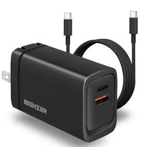 iBenzer USB C Charger 65w PD 3.0, 2-Port Foldable Travel Wall Charger with 3FT USB-C Fast Charging Cord for iPhone 14/13/12, MacBook Pro/Air, iPad Pro, Switch, Galaxy S23/S22, Dell XPS 13, Steam Deck