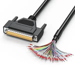 JUXINICE DB37 Male to Bare Wire with Cable Marker, 26AWG 6.6FT, D-SUB 37-Pin Connector to Single end Cable with Terminal,Multicore 37 Wire All Provided with Wiring Terminals-Black