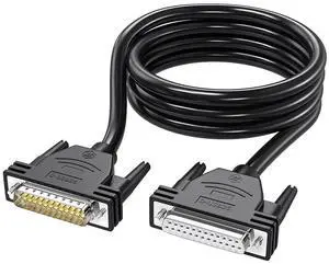 JUXINICE DB25 Male to Female Cable 16FT, 26awg Tinned Copper Wires,Double-Shielded with Foil &Metal Braid, D-SUB 25 PIN RS232 Serial Cable in Black
