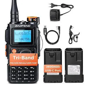 BAOFENG K6 Tri-Band Handheld Ham Radio, UHF/VHF/1.25M/NOAA/FM/Air Multi Band Receiver, with Dual 2600mAh Battery Type-C Charging, 999CH, Earpiece, Desktop Charger, Portable Walkie Talkie Two Way Radio