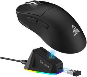 SOLAKAKA SM822 Wireless Gaming Mouse with Charging Dock, Tri-Mode Wireless Mouse, PAW3311 Optical Sensor, Up to 24,000DPI, 62g Lightweight Mouse with 5 programmable Buttons, for PC, Laptop (Black)