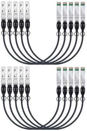 H!Fiber 10 Pack SFP+ Cable, 10G SFP+ DAC, 0.5m, Passive Direct Attach Copper Twinax Cable for Cisc SFP-H10GB-CU0.5M, Ubiquiti UniFi UC-DAC-SFP+, TP-Link, Meraki, Mikrotik, Intel, Fortinet, Netgear