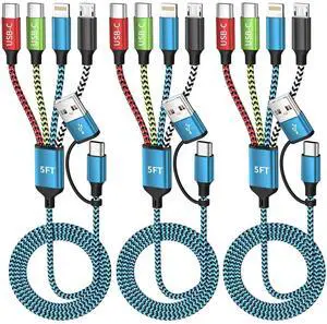 LHJRY Travel Essentials, USB C Multi Charging Cable[3Pack 4ft] 6 in 1 USB A/C to USB C/Micro USB/i-P Connector Multiple Charger Cord for Cell Phone/IP/Galaxy/PS/iPads and More