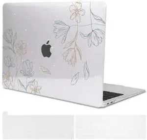 LCMOCICO for MacBook Pro 13 inch Case 2022 2021 2020-2016 Release M2 M1 Chip A2338 A2251 A2289 A2159 A1989 A1706, Shiny Clear Pattern Plastic Hard Shell Case Keyboard Cover Screen Film, Line Flower