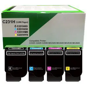 HOIEAYTON C231H C2325H C2325 High Yield Toner Cartridge C231HK0 C231HC0 C231HM0 C231HY0 Toner (3,000 Pages) Replacement for Lex Mark C2325 C2535 C2425 MC2425 MC2325 MC2535 MC2640 Printer