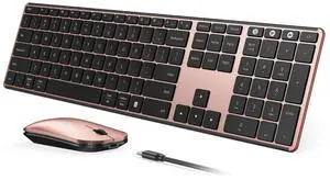 seenda Wireless Bluetooth Keyboard and Mouse Combo, SKM64-3 Rechargeable Slim Quiet Keyboard Mouse, 3 Multi-Device Connection, Compatible for Windows, Mac, MacBook, iPad, Tablet, Black Rose Gold