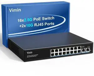 18-Port 2.5G Ethernet Switch with Dual 10GBASE-T Port, Vimin 16X 2.5G +2 x 10Gb RJ45 Ports Unmanaged Switch, 120Gbps Capacity, 2.5G/10G Switch Desktop/Wall Mount Network Switch for NAS, PC, AP