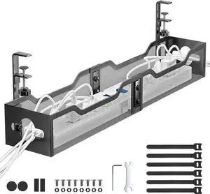 Under Desk Cable Management Tray Black, Cable Management Under Desk No Drill, 25'' Cable Tray with Clamp for Wire Management, Cord Organizer for Office, Home - No Damage to Table,Black