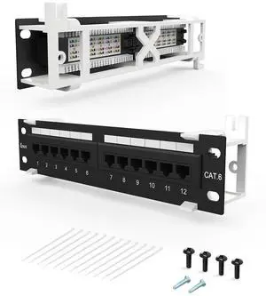 iwillink 12 Port 10Gbps Cat6A Network Patch Panel with Wall & Bracket Mount for Cat 6A/6/5e/5 Cabling