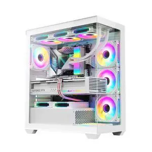 RUIX OV603 ATX Mid-Tower PC Case, Spacious High-Airflow Gaming Case with 4 x 120mm PWM ARGB Fans, USB 3.0 & Type-C Ports, Tempered Glass, Large Capacity Computer Case - White