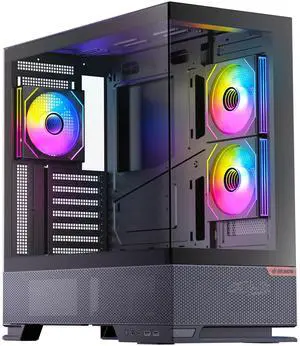 SAMA V50 Mid Tower Gaming PC Case with Dual Tempered Glass, 4ARGB PWM Fans, High Airflow Chassis with 360mm Radiator Support, USB-C Port, Easy Cable Management Black