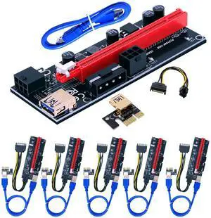 BTBcoin PCI-E Riser 009S GPU Riser Adapter Card PCIE X1 to X16 Extender PCI-Express Riser Cable for Bitcoin Litecoin ETH Coin Mining - 6 Pack
