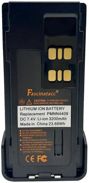Fascinatacc PMNN4409 PMNN4409AR 7.4V 3200mAh Li-ion Battery with USB Type C for XPR3300 XPR3300e XPR3500 XPR3500e XPR7550 XPR7550e XPR7580 XPR7580e APX4000 Radio PMNN4491BR PMNN4491 PMNN4493A