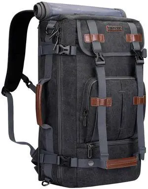 WITZMAN Canvas Backpack Vintage Travel Backpack Large Laptop Bags Convertible Shoulder Rucksack(A519-1 Black)