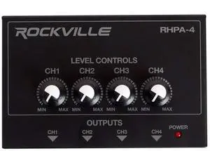 Rockville RHPA4 4-Channel Headphone Amplifier, Stereo/Mono Switch, Dual 1/4" and 3.5mm Outputs per Channel, USB Power, for Studio and Podcast Monitoring