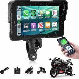 Hodozzy 5 Inch Motorcycle CarPlay Screen, Waterproof IP68 Wireless CarPlay & Android Auto Touchscreen GPS Display, with Mirror Link, Bluetooth, Manual Brightness, Type-C & SD Slot