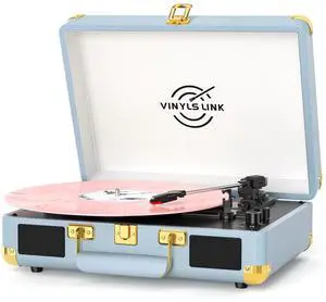 Blue Portable Suitcase Vinyl Record Player Bluetooth with Built-in Speakers, Vintage 3-Speed LP Turntable Player Support Auto-Stop, RCA/AUX/Headphone Jack,Blue
