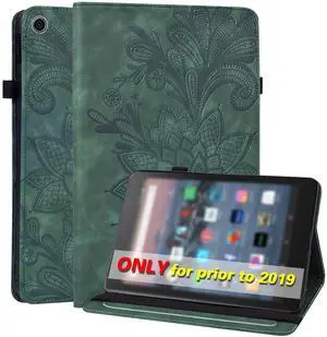 VODEFOX Kindle Fire HD 8 8th/7th/6th Generation Case 2016/2017/2018,Embossed Peacock Flower PU Leather Folio Wallet Shockproof Cover with Elastic Band - Green