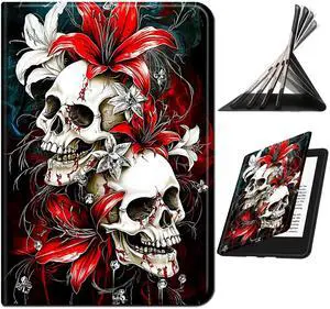 RWUTYTIUL for Fire HD 10 & 10 Plus(13th/11th Generation, 2023/2021 Release) Case, Shockproof Smart Protective Multi-Angle Viewing Tablet Cover for Women with Auto Sleep/Wake, Red Lily Skull