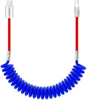chubbycable Curly Chubby 120W Coiled USB C Cable Retractable Fast Charging Cable for Car Charger Cord Compatible with iPhone 17-15 Series, Red+Dark Blue, USB-A to Type-C, 2.29FT-3.6FT
