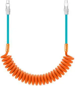 chubbycable Curly Chubby 240W Coiled USB C Cable Retractable Fast Charging Cable for Car Charger Cord Compatible with iPhone 17-15 Series, Dark Blue+Orange, Type-C to Type-C, 2.29FT-3.6FT