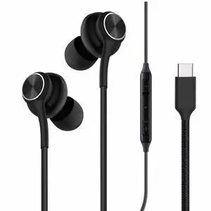 aioklcy Type-C Wired Earbuds, Dual-Driver Design, Black in-Ear Headphones, USB-C Connector, 3-Year Warranty, for Galaxy S25, S24, S23, S22 for iPhone 15, 16, 17, Built-in Control Buttons