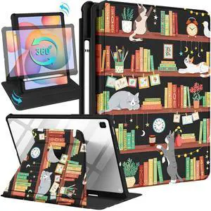Kidcube for Samsung Galaxy Tab S6 Lite Case 10.4 Inch 2022/2020 for Women Girls Kids Folio Cover with Pencil Holder Cute Cartoon Cat Kawaii Design Rotating Stand Tablet Cases SM-P610/P613/P615/P619