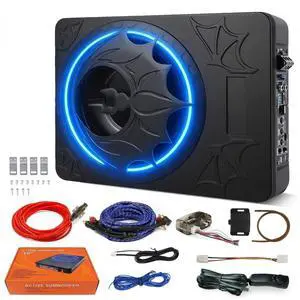 Slim subwoofer underseat with amp Active Powered Car- 800, Low Profile, 10" Inch, Remote Subwoofer Control, Built in Amplifier, for Truck,with Blue LED Light (TOP10-No LED)