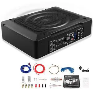 Yaeccc 8" 600w Audio Slim Under-Seat Powered Subwoofer, Car/Truck Sub Bass Speaker Kit,Ultra Slim Under Seat Active Powered Car/Truck Subwoofer