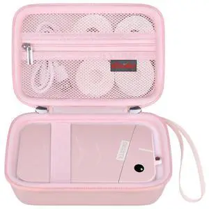 Elonbo Carrying Case for SUPVAN E10 Bluetooth Label Maker Machine, Portable Mini Thermal Label Printer Storage Holder, Wireless Small Handheld Sticker Maker Travel Bag, Pocket Fits Paper, Pink+