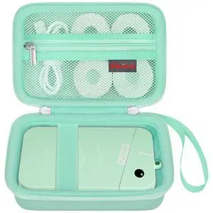 Elonbo Carrying Case for SUPVAN E10 Bluetooth Label Maker Machine, Portable Mini Thermal Label Printer Storage Holder, Wireless Small Handheld Sticker Maker Travel Bag, Pocket Fits Paper, Green+