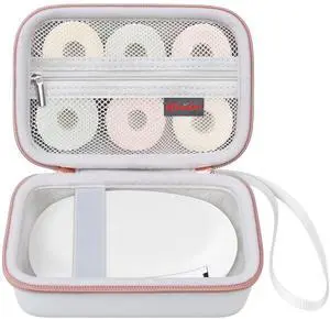 Elonbo Carrying Case for SUPVAN E10 Bluetooth Label Maker Machine, Portable Mini Thermal Label Printer Storage Holder, Wireless Small Handheld Sticker Maker Travel Bag, Pocket Fits Paper, White