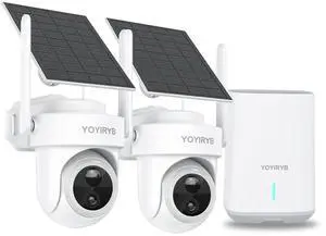 YOYIRYB Security Cameras Wireless Outdoor, No Subscription, 4K Solar-Powered Home Security Cameras System with 360 Pan & Tilt, Color Night Vision, Auto Tracking, Easy Setup, 5G & 2.4G WiFi, 2 Cam-Kit