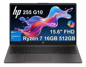 HP 255 G10 Business Laptop (15.6" FHD Anti-glare, AMD Ryzen 7 7730U (> Intel i7-1355U) 16GB RAM, 512GB SSD) for Home, Student, Military Grade, Webcam w/Shutter, Numeric Keypad, Wi-Fi 6, Win 11 Pro