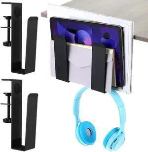 HOFURME 2 Pack Adjustable Desk Side Laptop Holder, Heavy-Duty Metal Desk Side Storage, Hanging Organizer with Tool-Free Clamp (6.97"x1.77", Black)