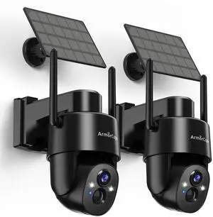 Armorcope 2Pack 2K HD Solar Security Cameras Wireless Outdoor, 360 PTZ View Outdoor Cameras for Home Security,Color Night Vision with Spotlight, 2-Way Audio,Motion Alarm, IP65 Waterproof