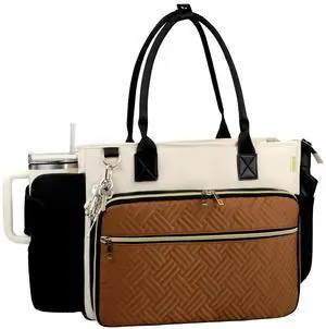 Sambois Teacher Tote Bag for Women with Large Cup Holder& 15.6 Inch Laptop Compartment, Utility Work Tote Bag with Internal Insulated Pocket for Office Supplies Teacher Essentials Business Travel