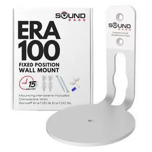 Sound Bass ERA 100 Wall Mount Bracket, Low Profile, White, Single Unit, Compatible with Sonos ERA100 & ERA 100 SL Speaker, Complete with All Fixing Hardware