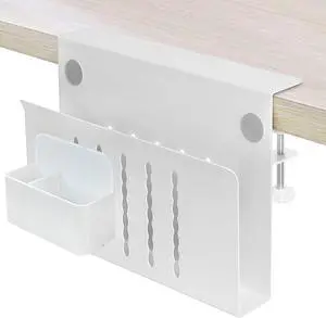 Josmimic Desk Side Storage, Metal Laptop Holder with Magnetic Pen Box, Clamp-On Under Desk Organizer with Cooling Holes & Anti-Scratch Pads for Office and Home (White)