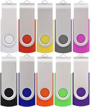 USB Flash Drive 32GB 10 Pack, Thumb Drives Memory Stick USB 2.0 Bulk Swivel Jump Drive Zip Drive with Led Indicator for Data Storage, File Sharing(10Pcs, Multi-Color,32 GB)