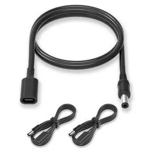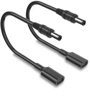 USB-C Female Input to DC 5.5x2.1mm Power PD for Monitors and Drones,USB-C to 5.5mm x 2.1mm Barrel Jack Cable, 100cm, Black (2 Pack)