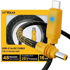 STARGEAR Starlink Mini Cable 6.5FT, 18AWG 140W Starlink USB C to DC Power Cable Cord, Waterproof Barrel Jack, Mini Accessories Work with 65W+ PD Source, Compatible with 28V PPS 20V PD Protocols