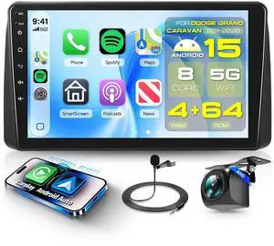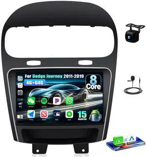 [8 Core 4G+64G] Car Radio for Dodge Journey 2011-2019 and for Fiat Freemont 2012-2014 with Wireless Carplay Android Auto,9'' Touchscreen Car Stereo with WiFi/GPS Bluetooth FM/RDS+AHD Backup Camera