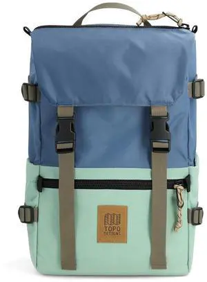 Topo Designs Rover Pack Classic - Laptop Tablet Daypack for Commutes, Day Trips, Hikes, Iconic Denver Design, PFAS-Free, Fair Trade, BlueSign Backpack (Stone Blue/Ash Green)